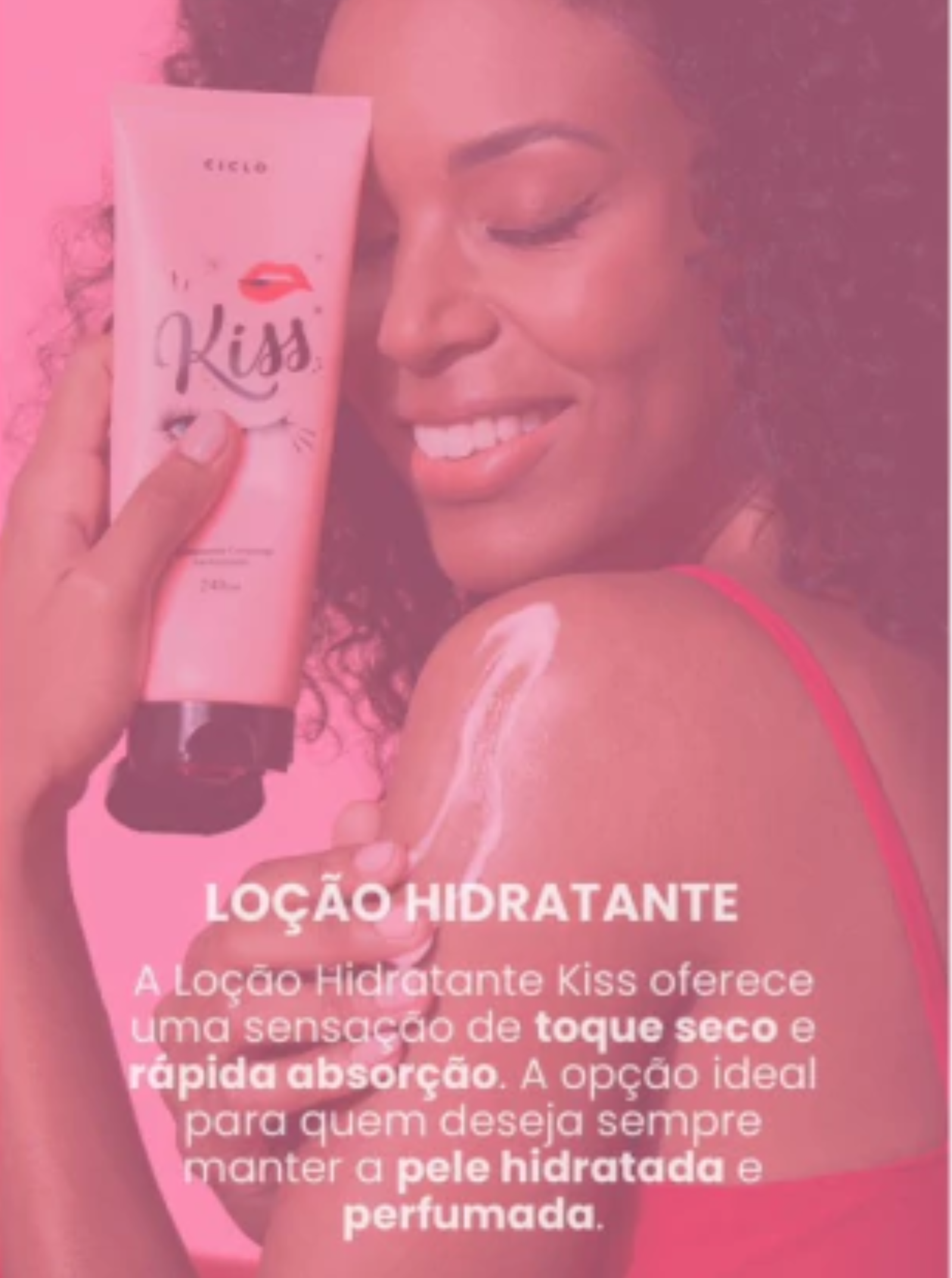 O Creme Hidratante Kiss – Ciclo é mais do que um hidratante corporal: é um convite diário ao cuidado e ao bem-estar. Sua fórmula equilibrada entrega hidratação profunda, conforto sensorial e toque sedoso, tornando-o perfeito para quem busca uma pele mais suave, nutrida e saudável — com uma experiência de uso que transforma o cuidado em um ritual de prazer.